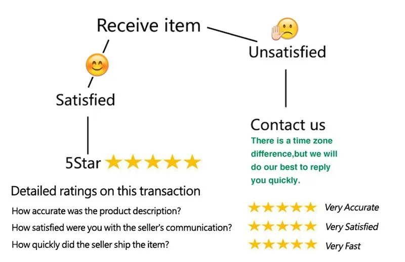 1. If you are satisfied with our products and services,please leave your positive feedback and 5 stars,and 5 stars for the detailed rating of your order.